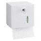 Quantity: 1Easy to refill. Lock with key. Level toilet paper visible thanks to little window. Capacity : 1 roll or 2 packages of toilet paper. Finishing: lacquered epoxy white. Key and kit for attaching the dispenser to the wall. Dimensions : H 13,7 x W 13,4 x D 12 cm.