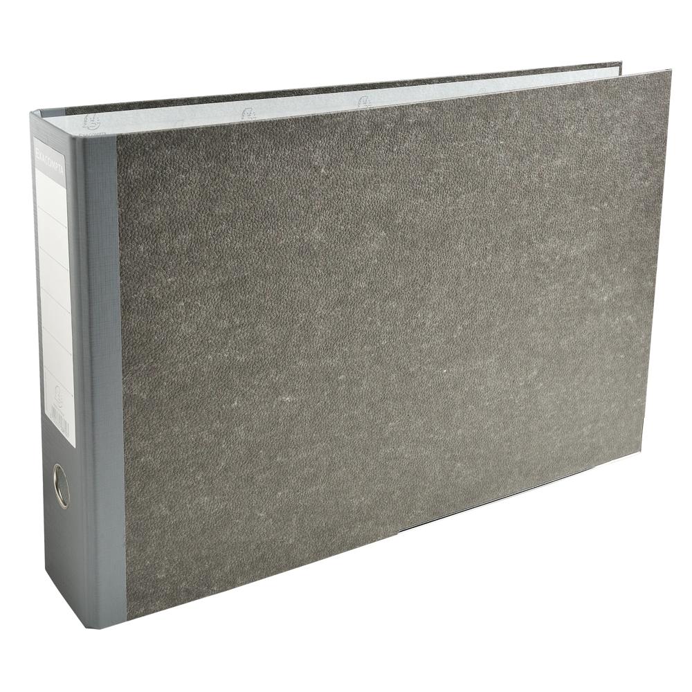 Exacompta Prem Touch Lever Arch file has a grey marbled outer with a grey spine and printed paper inside. Metal reinforced finger hold and reinforced bottom edge.