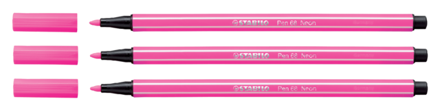Le Pen 68 est disponible dans un grand nombre de couleurs vives, y compris des tons néon et pastel. Cette diversité garantit une créativité permanente - c'est pourquoi le STABILO Pen 68 s'inscrit parfaitement dans les tendances actuelles telles que le handlettering, le journaling ou le sketchnote. Les amateurs d'art mandala et tous ceux qui préfèrent dessiner ou peindre seront également enthousiasmés par la polyvalence de ce stylo-feutre de haute qualité. La pointe robuste permet d'obtenir des couleurs homogènes et est parfaite pour tracer facilement des lignes épaisses ou remplir de grandes surfaces. La pointe peut rester décapuchonnée jusqu'à 24 heures sans sécher, ce qui est idéal pour travailler sur votre projet créatif. Les couleurs peuvent être mélangées avec de l'eau pour obtenir de magnifiques effets d'aquarelle. Le Pen 68 est plus durable que jamais : désormais, le capuchon et le corps du stylo sont composés à 96% de plastique biosourcé, conformément à l'approche du bilan de masse.* Produit en Allemagne * Le capuchon et le corps du stylo sont composés à 96% de plastique biosourcé, conformément à la méthode du bilan de masse.* L'encre à base d'eau peut être mélangée à de l'eau pour obtenir de magnifiques effets d'aquarelle.* Pointe M robuste d'environ 1mm* Peut rester sans capuchon jusqu'à 24 heures sans se dessécher* Le capuchon s'insère au dos du feutre* Disponible en 65 couleurs. Toutes les couleurs sont disponibles séparément * STABILO Pen 68 feutre de qualité supérieure en couleur : néon rose (56)