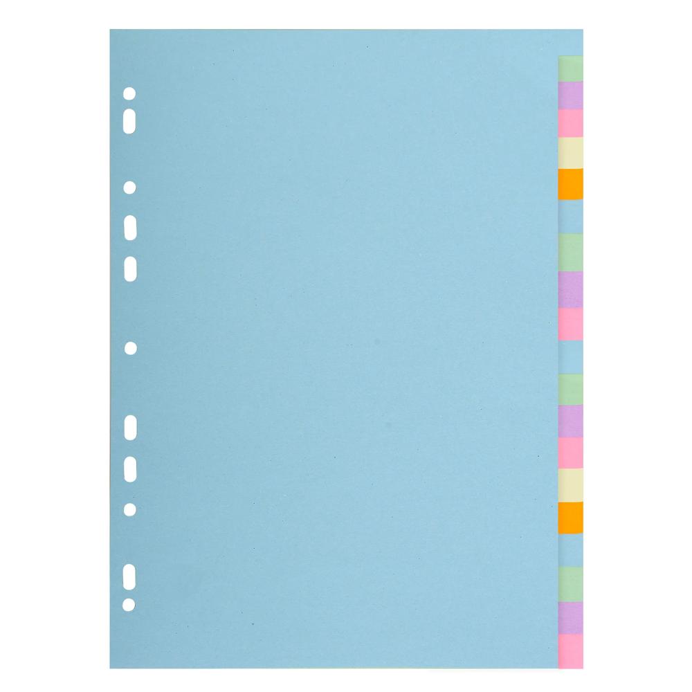 The most economical dividers now in pastel shades made from recycled card. These dividers are perfect for keeping all your paperwork and documents organised. 20 part, numbered 1-20. Multi punched allowing them to be easily inserted into ring binders or other types of binders. 100% French manufacturing, material and processing in the Exacompta-Clairefontaine factories, with Blue Angel certification which certifies that the product comes from post-consumer waste.