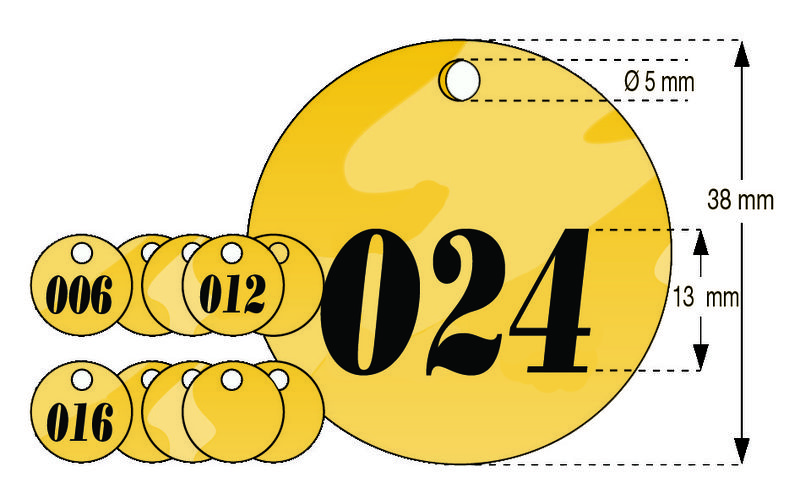 Ø 38 mm, voorzien van een gaatje met Ø 5 mm.