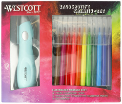Detailled descriptionAérographe électrique avec gros bouton de commande, avec batterie de 600 mAh intégrée, pulvérisation à main levée, contenu: aérographe, étui de 12 crayons magiques, 19 modèles créatifs (36 motifs), câble de charge USB