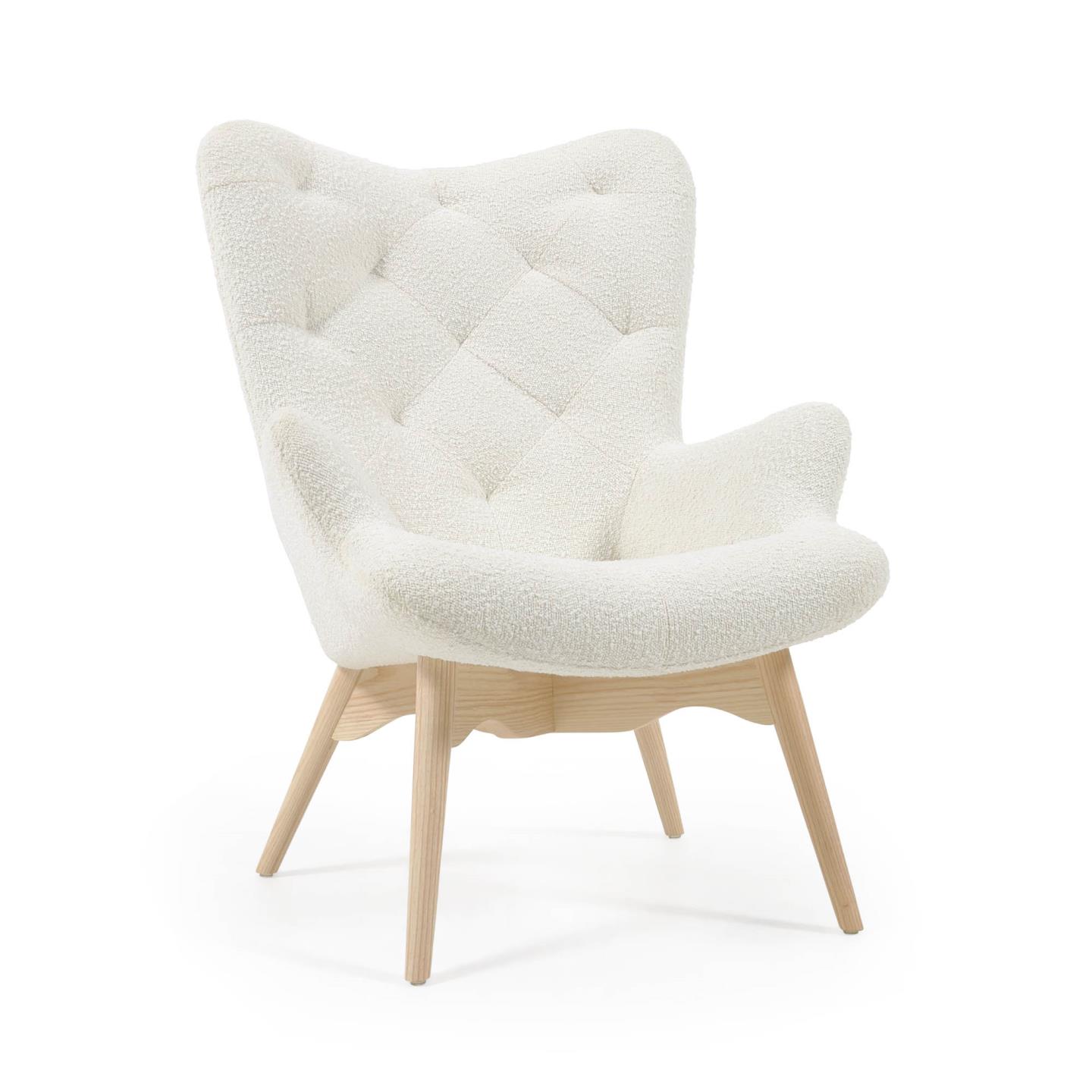 - Solid ash wood legs with natural finish.
