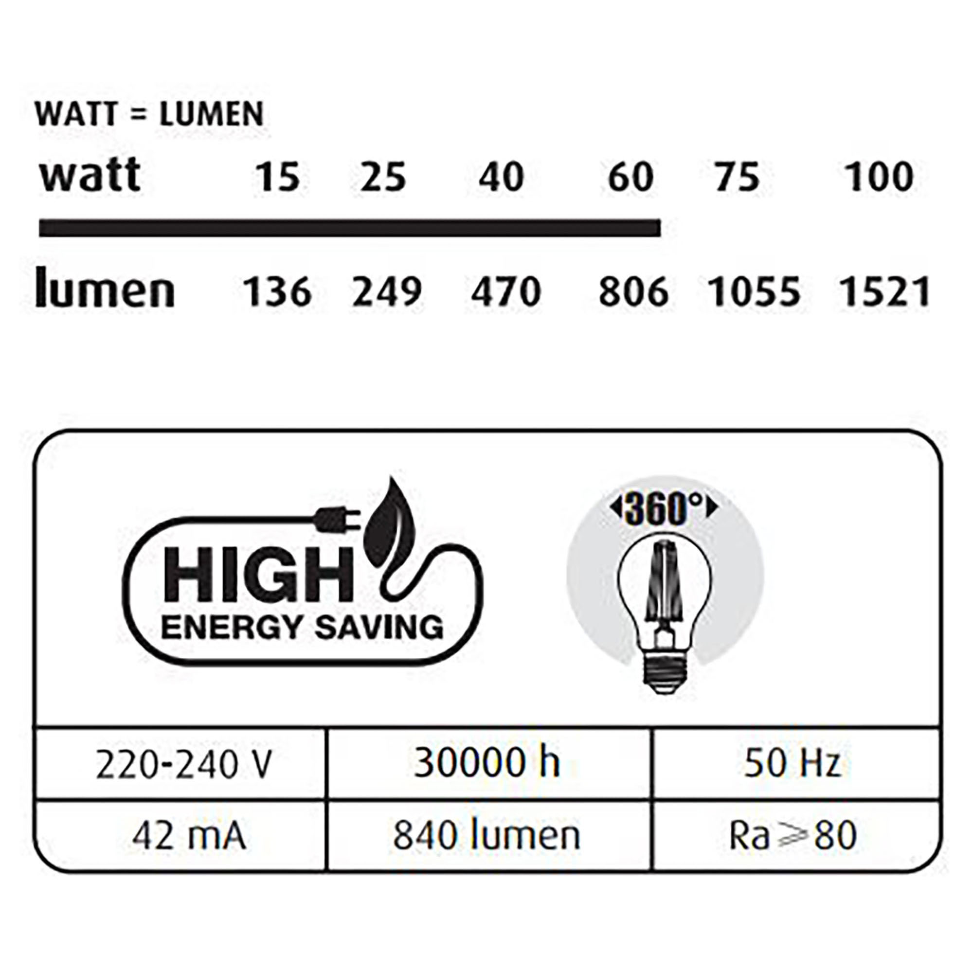 Latest generation low energy consumption bulb (energy class A) / Long life.