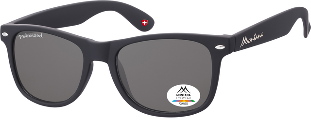 Detailled descriptionLunettes de soleil branchées Montana en noir avec des verres fumés polarisés Largeur des verres : 54mm, largeur du pont : 19mm Etui souple inclus Convient aux hommes et aux femmes.