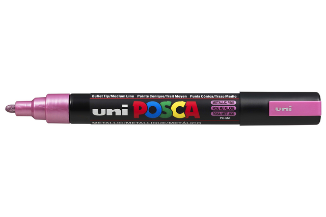 Faites l'expérience d'un dessin à la fois fluide et vibrant avec le marqueur à pigment PC-5M, rose métallique de Posca. Sa couleur d'encre vive et métallique donne de la profondeur à vos illustrations, tandis que son corps noir confère une esthétique élégante et professionnelle.