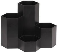 Detailled descriptionAvec 3 tubes & 1 compartiment pour les petits objets dans différentes hauteurs, en PP résistant, forme nid d'abeille (hexagonal), dimensions: (L)160 x (P)112 x (H)120 mm, dans un carton avec fenêtre de visualisation