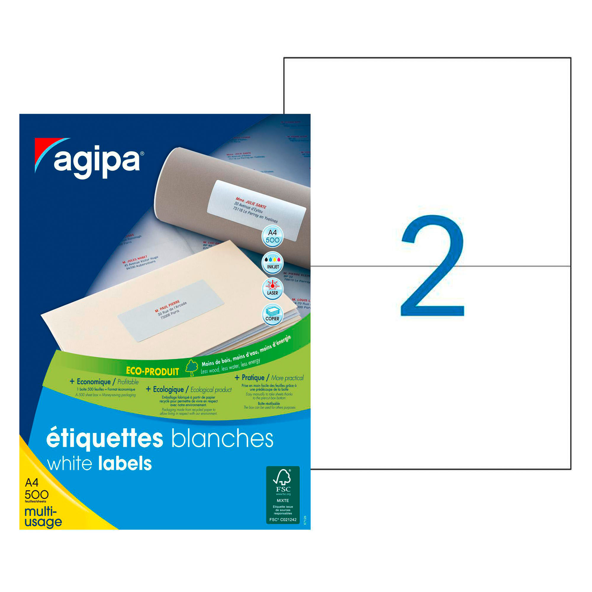 Box of 500 sheets of 2 labels per sheet, a total of 1,000 labels.