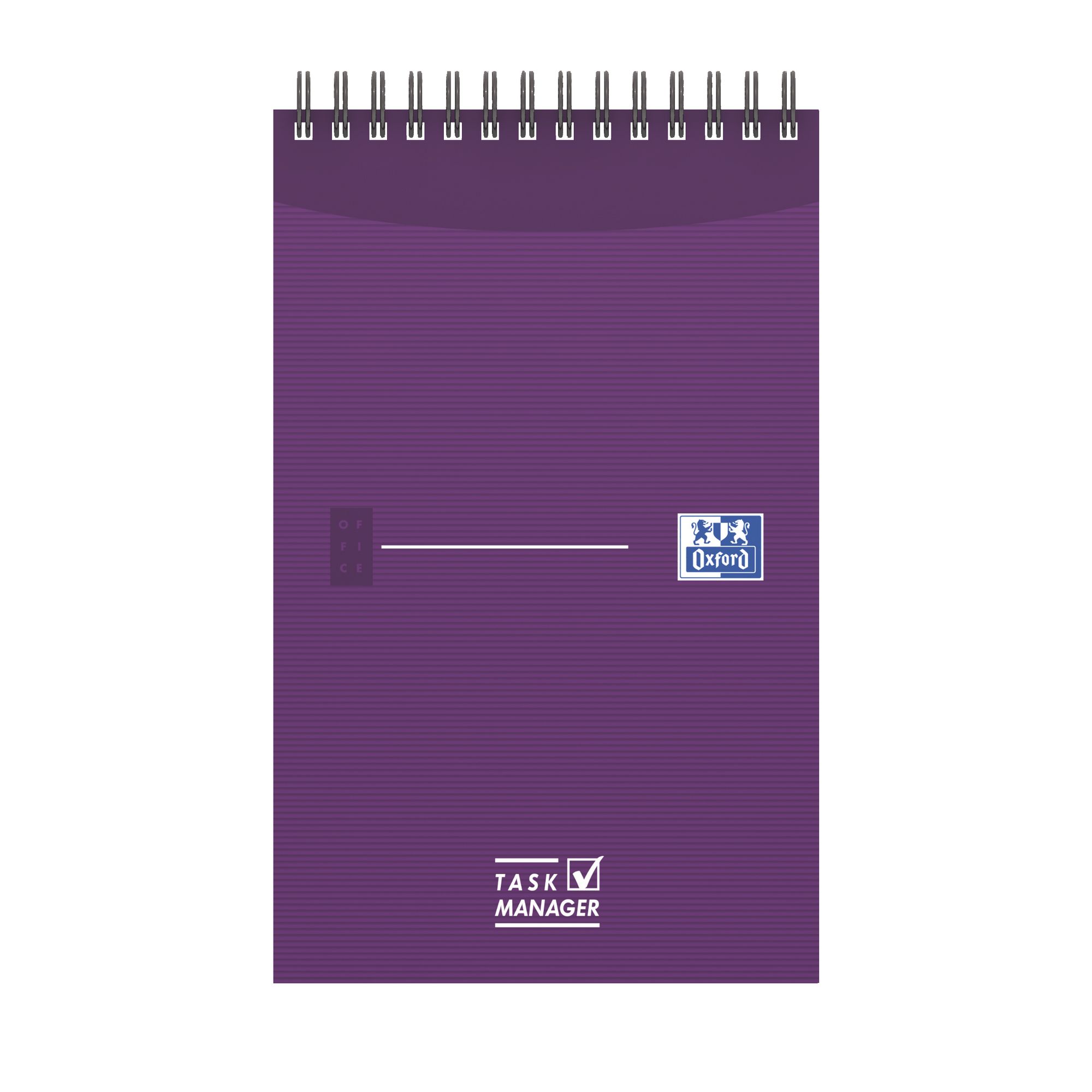 Detailled description```html To manage your tasks effectively and never forget anything, this Task Manager notebook from the Oxford brand will quickly become essential.70 double-sided sheets (equivalent to 140 pages)Soft cover made of card, all bound by a spiral.Lined ruling, to track the progress of each task until completion without any erasures.12.5 x 20 cm format for easy insertion into your handbag, pocket, school bag, etc.Very convenient to have your To Do List at hand wherever you go!It is delivered in random colors: purple or black. ```