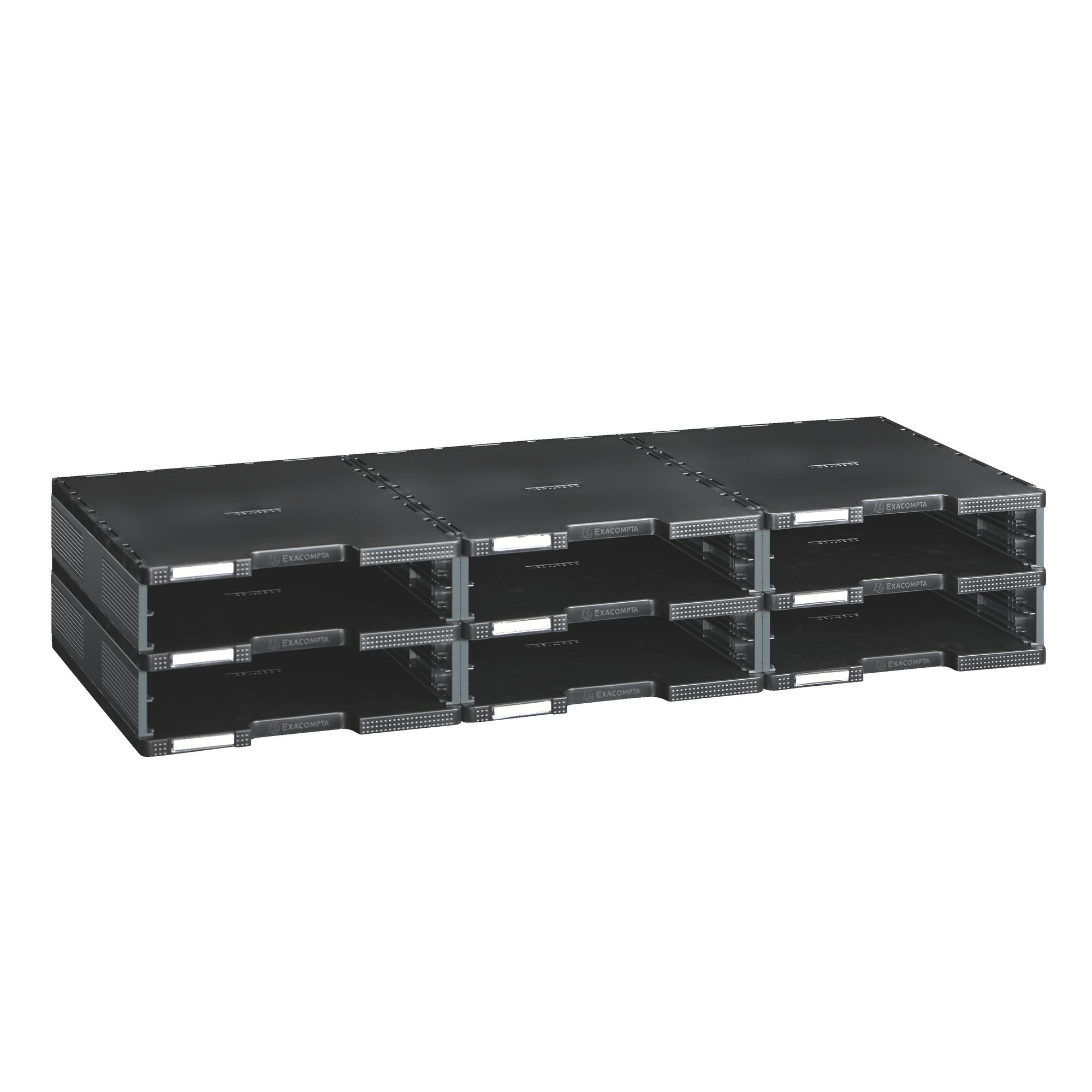 Modular, in order to classify your documents properly. 6 compartments with standard size: H 8,9 x W 28,8 x D 35,4 cm. Useful dimensions of a compartment: H 5,9 x W 25,6 x D 34 cm. 2 possible configurations: 3 columns with 2 compartments or 2 columns with 3 compartments. For documents up to size 24 x 32 cm. Very strong: carrying capacity is up to 18 kg. It is possible to add drawers, in order to guard the confidentiality of your documents (optional). For an easier identification of your documents, you can replace the black drawers (optional) by coloured fronts (optional). Outside dimensions: -configuration 3 columns of 2 compartments: H 16,3 x W 86,4 x D 35,4 cm. -configuration 2 columns of 3 compartments: H 24,5 x W 57,6 x D 35,4 cm. In recyclable plastic polystyrene, with Ange Blue-certificate. Outside in grey, inside in black. Already assembled.