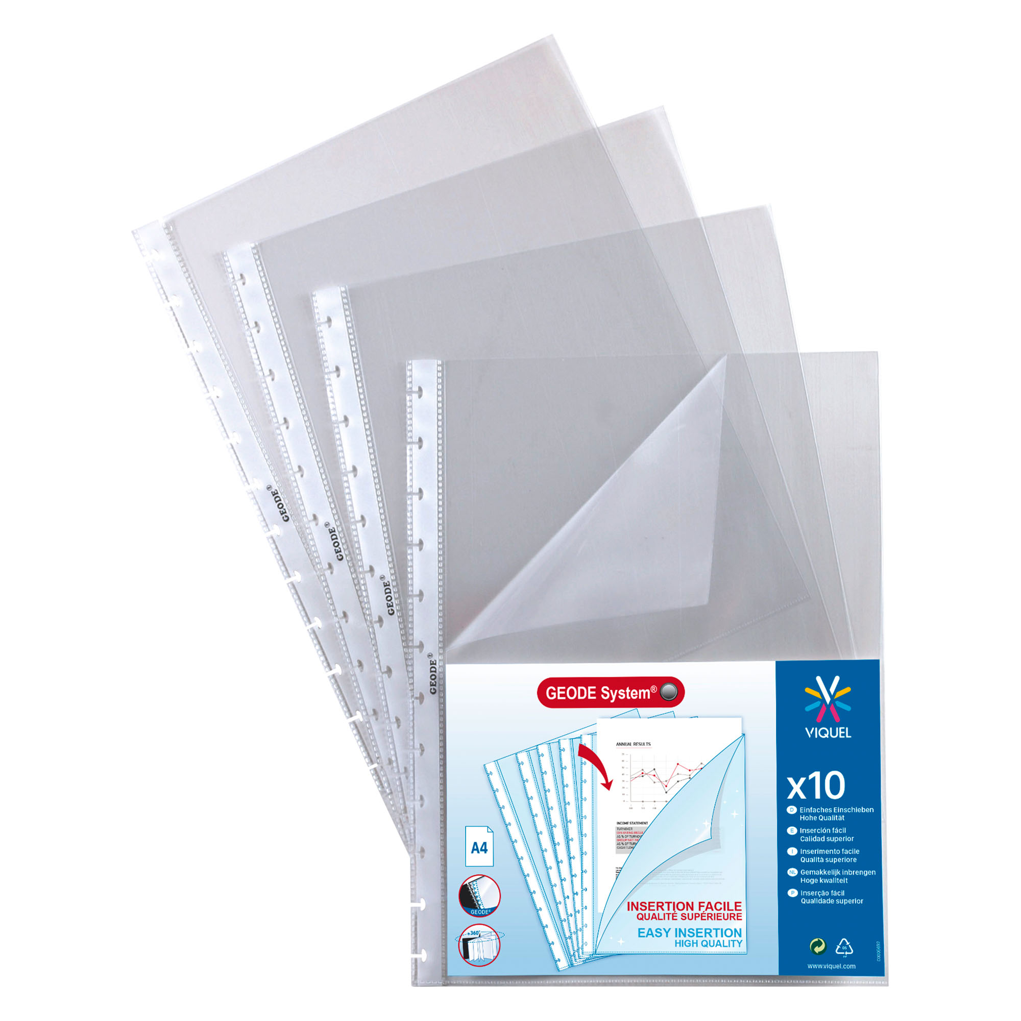 Pack of 10 removable sleeves Géode Viquel A4 smooth polypropylene 7/100e
