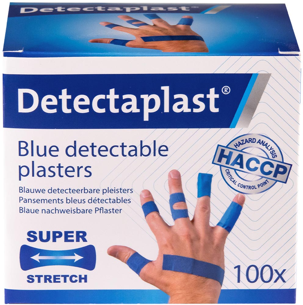 * Les pansements HACCP sont obligatoires dans tous les lieux où sont manipulés des produits alimentaires tels que les industries agroalimentaires, la restauration, les collectivités, les boulangeries, les boucheries, les sandwicheries, etc. * De couleur bleue, le pansement est détectables visuellement et électromagnétiquement réduisant ainsi le risque d'entrée dans la chaîne alimentaire. * Ces pansements sont fabriqués à partir d'un matériau textile élastique très confortable. * Ils ont un pouvoir adhésif particulièrement élevé qui leur permet de bien adhérer, même dans des conditions difficiles.* L'adhésif hypoallergénique garantit un risque minimal d'allergies.