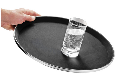 Detailled descriptionDessous en fibre de verre, surface en caoutchouc pour un maintien sûr, bord avec revêtement inox, empilable, diamètre: 355 mm, hauteur: 22 mm