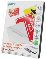 Detailled descriptionBrillant, 2x75 microns, polyéthylène (PET), couche collanteissue d'une colle spéciale dans un rapport de mélange définicoins arrondis, plastification à chaud, dimensions: 216 x303 mm, contenu: 100 pièces