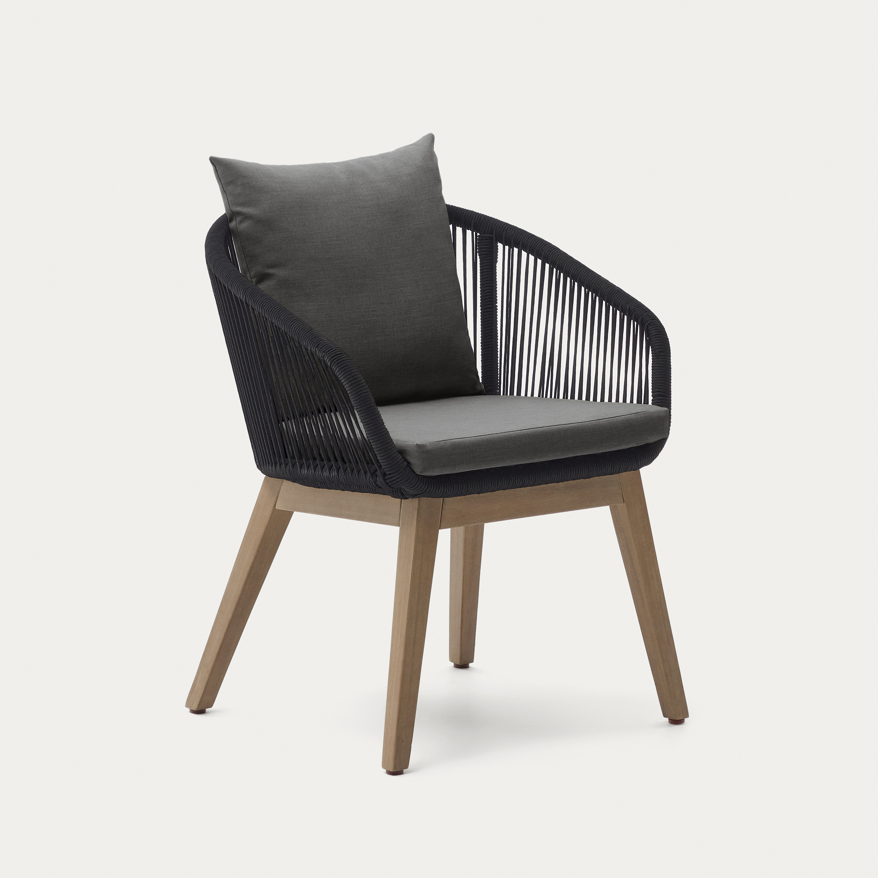 Chair made of solid acacia wood and hand-woven UV-resistant rope.