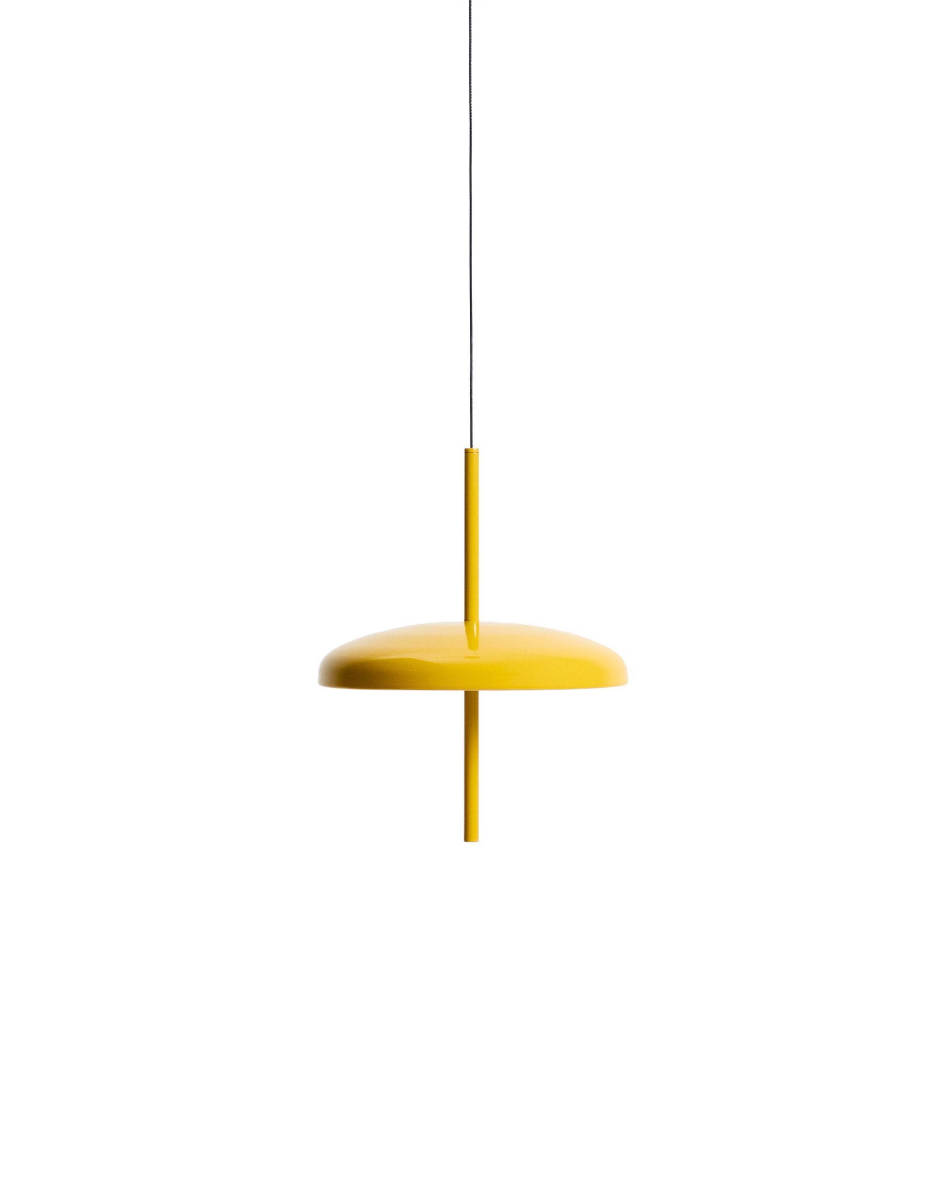 • Portable aluminium ceiling lamp with yellow painted finish.