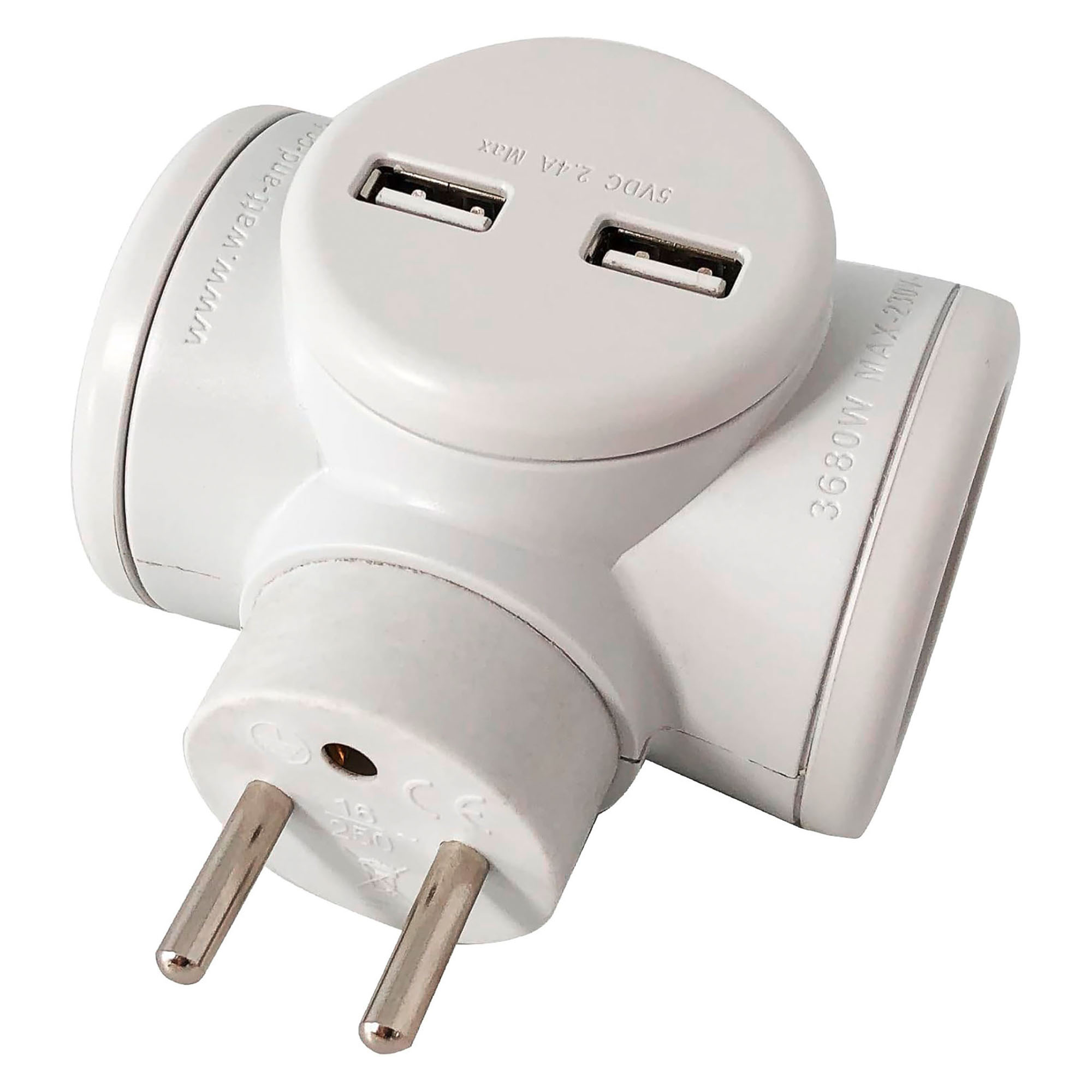 Detailled descriptionThe meeting of design and technology to connect everything at home and in the office.2 sockets 16A.180° rotatable head, allowing it to be plugged in even in tight spaces.2 USB-A ports compatible with all types of mobile devices.