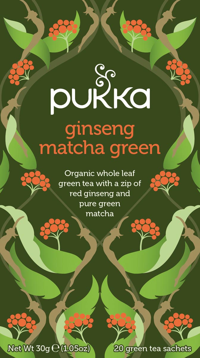 Pukka thé bio, Ginseng Matcha Green, paquet de 20 pièces