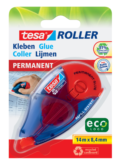 Roller colle tesa® ecoLogo® permanent rechargeable blister
