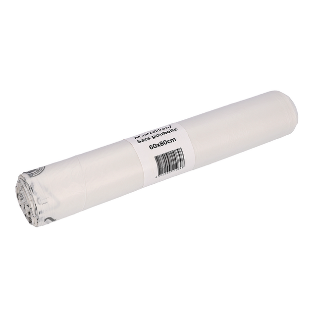 Une large gamme de sacs poubelles Cleaninq vous permettra de trouver ce que vous cherchez! Choisissez parmi différents formats, épaisseurs, matériaux et couleurs.Ce sac poubelle est fabriqué en polyéthylène haute densité (HDPE) recyclé et mesure 60x80cm. * Caractéristiques : * Sac poubelle transparent sans cordon, d'une capacité de 60 litres.* Chaque rouleau contient 25 sacs poubelles de 60x80cm et ont une épaisseur de 19 microns (T23).* Fabriqué à partir de polyéthylène haute densité (HDPE) recyclé.