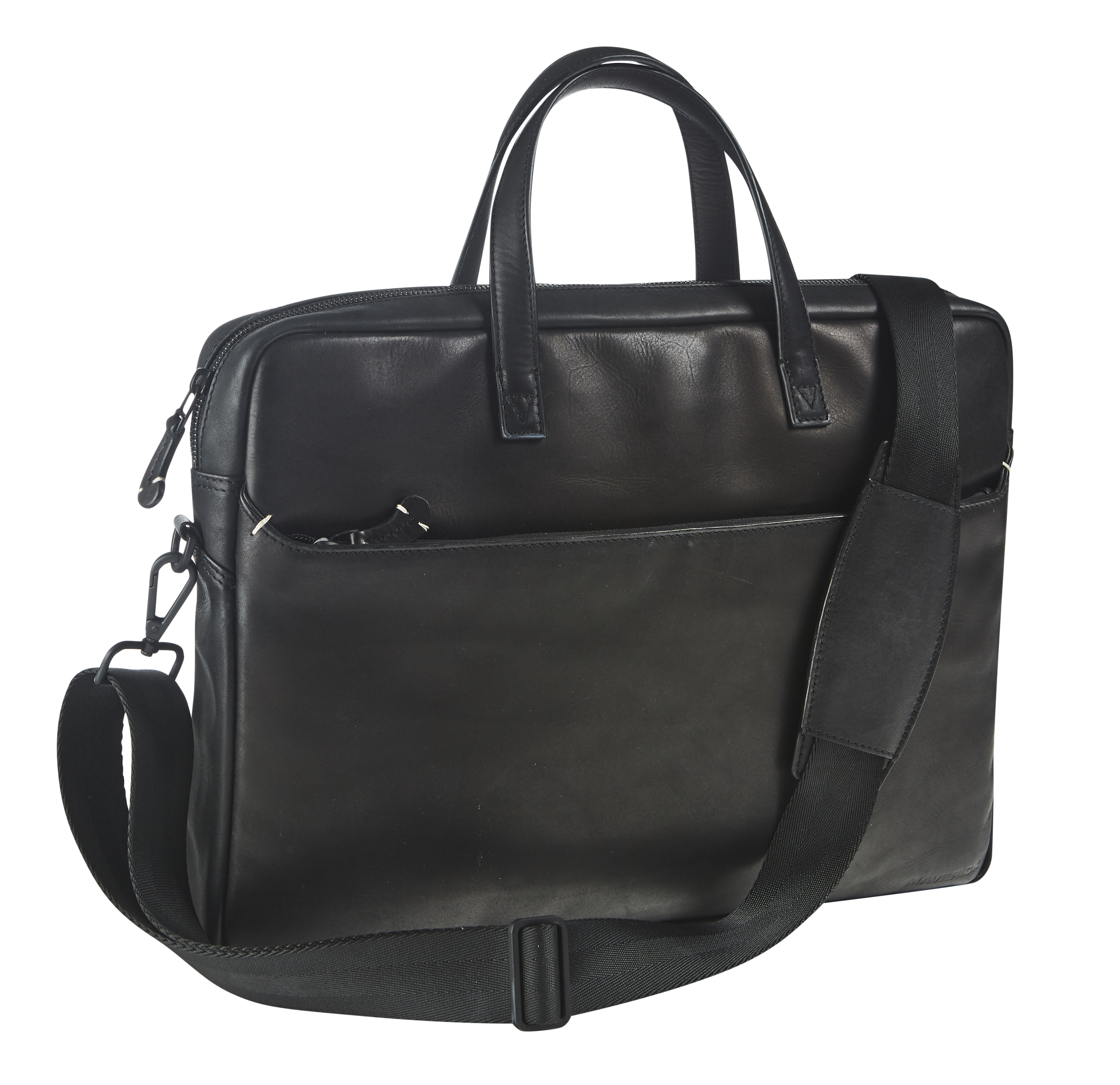 La collection MAVERICK URBAN CLASSIC en quelques mots? Un cuir de vachette pleine fleur naturel, noir mat et doux à souhait grâce à la finition à la cire. La technique dite « bulletproof » garantit une extrême résistance aux rayures et aux taches. Votre sacoche ne vous lâchera pas de sitôt ! À l’élégance et à la robustesse s’ajoute un grain subtilement marqué, gage d’authenticité. Gardez tout à portée de main dans cette sacoche à fermeture zippée. Elle comprend un compartiment extérieur pratique et un compartiment principal renforcé pour ordinateur portable de 15’6’’. Never out of style, bro! Cuir de vachette pleine fleur - organisateur interne - sangle pour fixation à un trolley - sangle détachable - compartiment pour ordinateur portable de 15’6’’. Dimensions: 42x5x30,5cm. Noir.