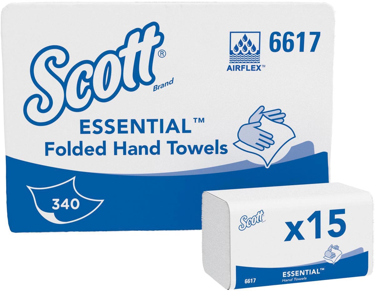* Essuie-mains enchevêtrés Scott Essential 6617, 15 paquets x 340 essuie-mains en papier blanc (au total 5.100 pièces).* Améliorez l'expérience dans vos sanitaires avec les solutions Scott® Essential™ fiables, conçues pour maintenir les normes de nettoyage et d'hygiène requises dans les environnements à forte fréquentation, sans faire de compromis sur la qualité et la valeur. Les essuie-mains papier pliés Scott® Essential™ sont nos essuie-mains à usage unique les plus efficaces, conçus pour un séchage quotidien fiable des mains. Les essuie-mains pliés sont conçus pour être distribués une feuille à la fois. Cette méthode de distribution d'une feuille à la fois est conçue pour améliorer l'hygiène des mains en minimisant le risque de contamination pendant le séchage des mains, car l'utilisateur ne touche que la feuille utilisée. * Nos distributeurs sans contact réduisent le risque de contamination croisée. La distribution d'un essuie-mains papier à la fois vise également à réduire les coûts d'exploitation, car l'utilisateur ne prend que les essuie-mains dont il a besoin pour se sécher les mains. * Avec 340 essuie-mains par paquet, le temps de maintenance est réduit car il est moins nécessaire de recharger le produit. Ce grand nombre d'essuie-mains par paquet est également conçu pour favoriser l'hygiène sur le lieu de travail dans les environnements très fréquentés. En effet, le risque d'épuisement est plus faible qu'avec les paquets d'essuie-mains pliés qui contiennent moins d'essuie-mains par paquet. * Ces essuie-mains pliés sont également conçus avec notre technologie unique Airflex™, ce qui permet une absorption plus rapide pour un séchage des mains plus hygiénique, tout en utilisant moins de papier et en produisant moins de déchets. Vous en avez donc plus pour votre argent et vous améliorez l'hygiène sur le lieu de travail. * Ces essuie-mains à plis intermédiaires sont fabriqués avec la technologie de compression pour une plus grande durabilité en réduisant le stockage et le transport. * Compatibles avec plusieurs options de distributeurs d'essuie-tout Kimberly-Clark : les distributeurs Aquarius™ en blanc ou noir (codes produits 6945 et 7171), un distributeur grande capacité (code 9962) et un distributeur grande capacité en acier inoxydable (code 8971). * Dimensions pliées (lxLl) : 200x106mm. * Dimension dépliée (lxL) : 200x212mm.