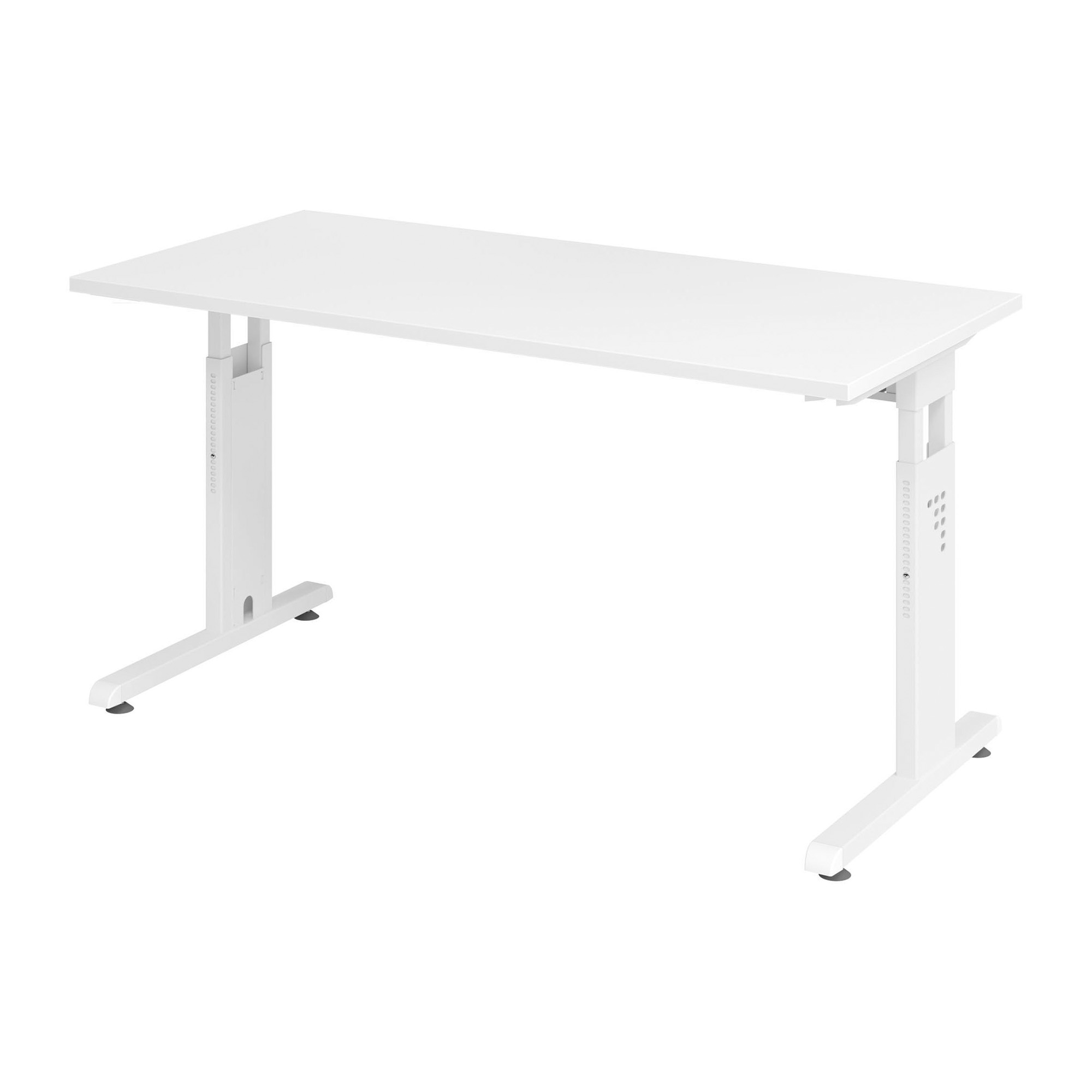 Hauteur de travail 65 - 85 cm. Hauteur ajustable avec crans d’arrêt de 1 cm. Réglage de la hauteur ± 5 mm. Épaisseur du plateau de table 2,5 cm. Piètement blanc. Goulotte de câbles horizontale incluse. Passage de câbles vertical, possible dans le pied de table, cache intérieur amovible. Plateau disponible en 2 couleurs: chêne ambré et blanc. Dimensions plateau: L 140 x 67,2 cm.