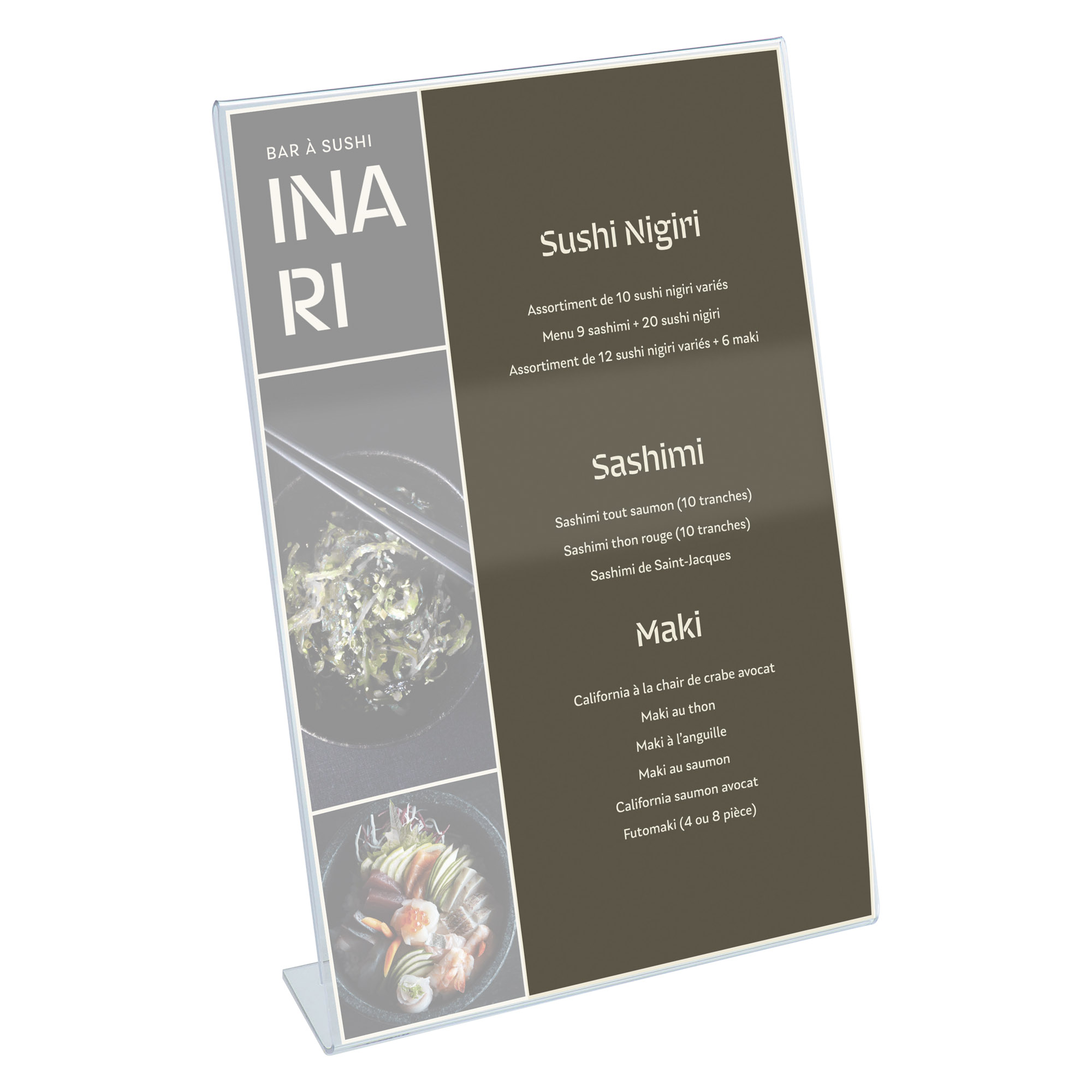 Inclined in shape, it is very stable and your message will be perfectly read by your audience, customer, supplier...