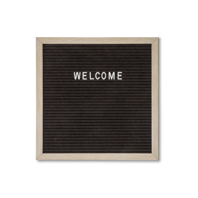 Communiquez avec style et élégance grâce au tableau à lettres IEZZY 30x30cm en bois naturel noir. Ce tableau carré associe un fond en feutre noir à un cadre en bois clair, pour un rendu chaleureux et contemporain. Idéal pour afficher des messages courts, des citations ou des prix dans les restaurants, les boutiques, les bureaux ou à la maison. Les 330 lettres blanches en plastique et les 120 chiffres inclus permettent de créer facilement un message clair et original. Son design intuitif vous permet de modifier le texte en un instant. Ce tableau à lettres peut être fixé au mur ou posé sur un comptoir ou une étagère.Caractéristiques :* Type : tableau à lettres.* Dimensions : 30x30cm.* Couleur du tableau : noir.* Matériau du cadre : bois naturel.* Contenu : 330 lettres blanches et 120 chiffres.* Fonctionnalités : facile à monter et à régler.* Utilisation : convient pour une fixation murale ou une pose sur un comptoir.