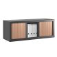 Structure: welded monoblock, sheet steel 8/10e, smooth epoxy finish, resistant against shocks and scratches (grained for anthracite body). Height extension 44 cm. Closure: polypropylene slats 30 mm. They disappear completeley in the sides of the cabinet. Handle over the width of the cabinet, in epoxy lacquered profiled steel, colour matches the colour of the body. Delivered with 2 keys, of which 1 with click system.