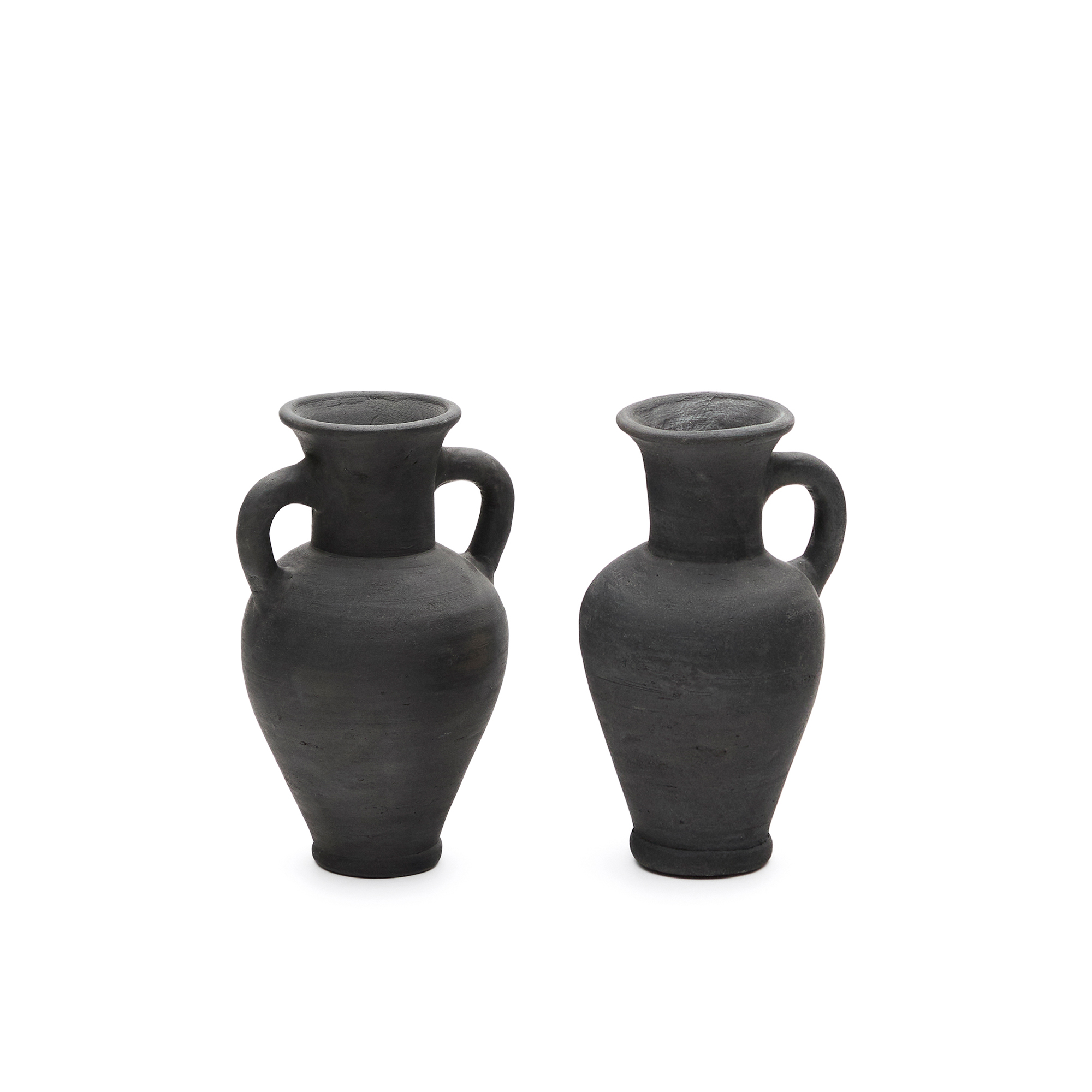 Tefare set of 2 terracotta vases in a black finish, 18 cm / 18 cm