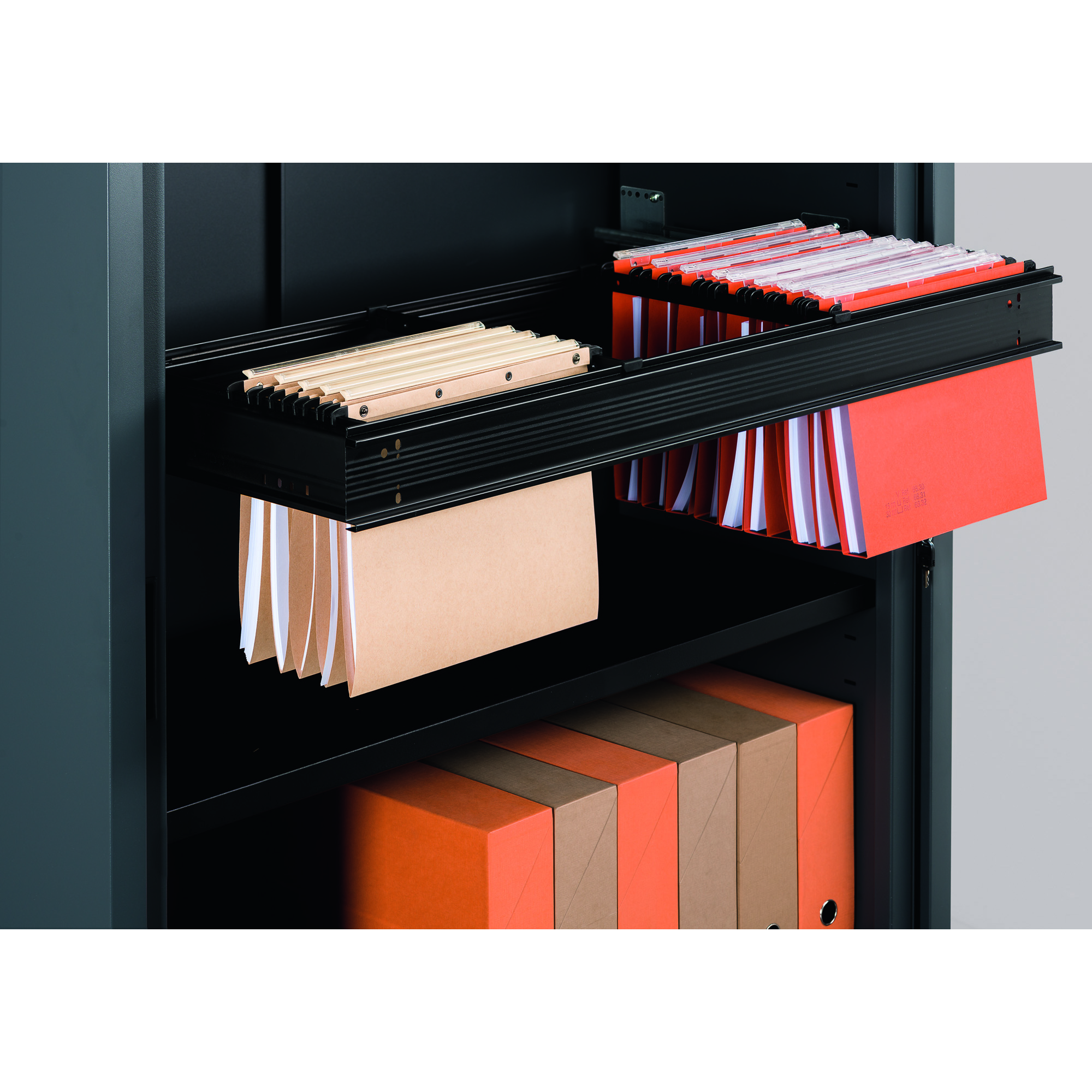 Ideal complement to your curtain cabinets, the telescopic frame is perfect for organizing your "for drawer" hanging files. With it, you can store up to 80 files per frame and consult them with ease! Convenient, the frame attaches instantly. And for even more simplicity, the spacing is adjustable.