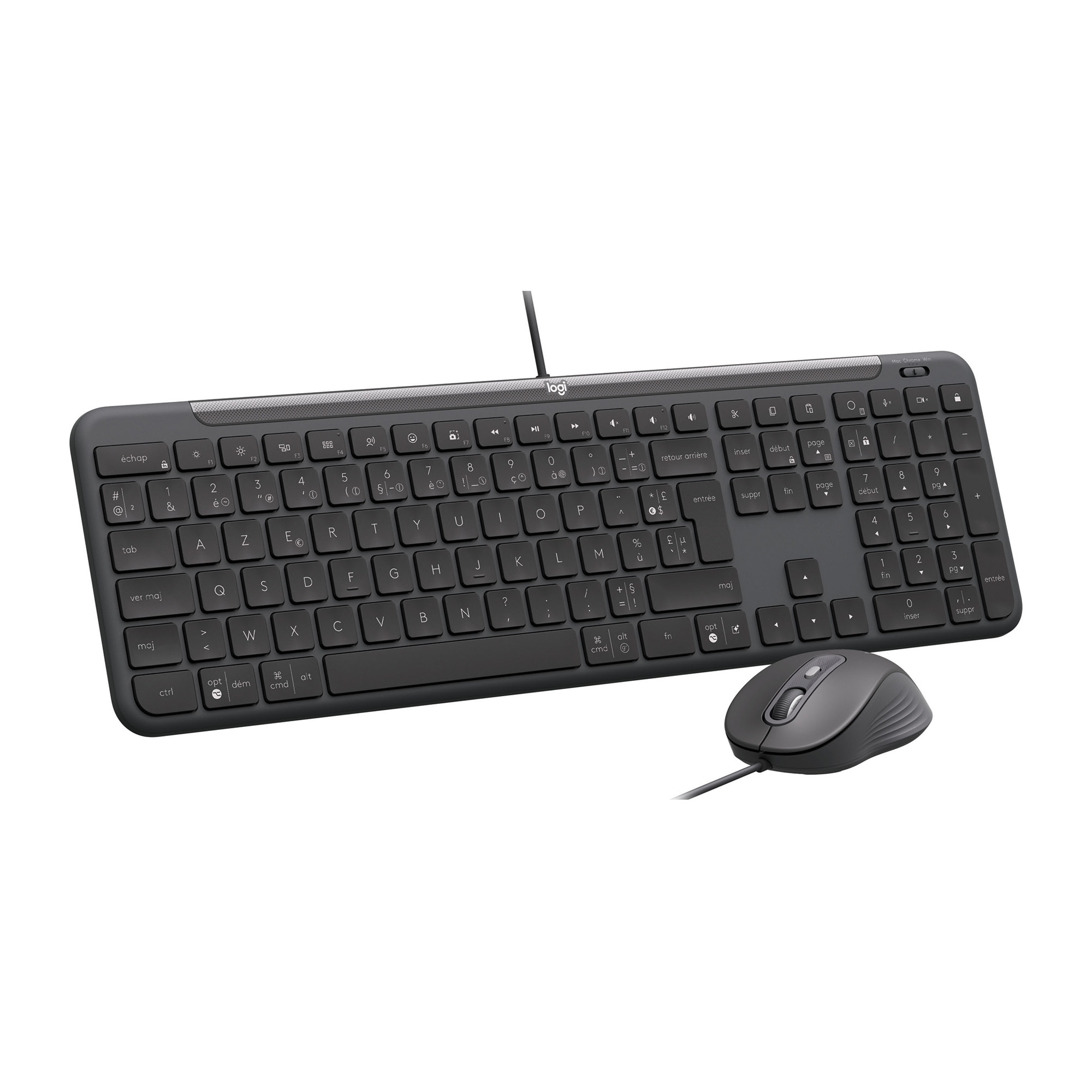 This set combines a compact and responsive keyboard with an ambidextrous mouse with fast scrolling, to provide comfort and productivity on a daily basis.