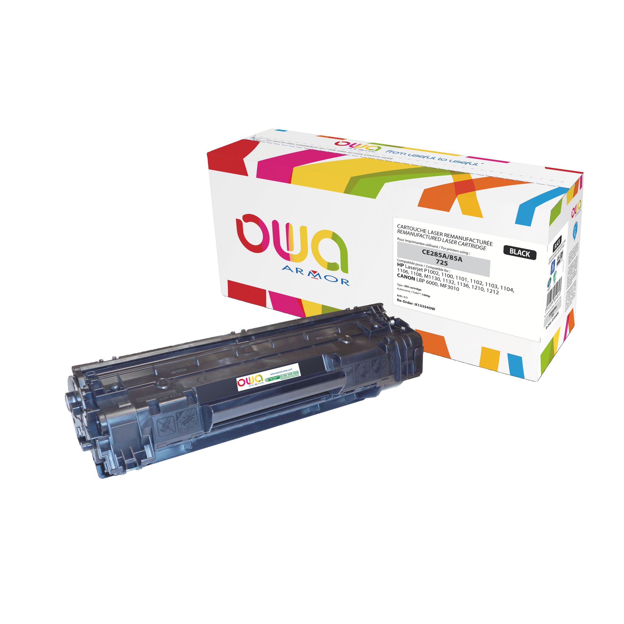Other cartridges with the same compatibilitiesToner Cartridge Owa HP 85A-CE285A black for LaserJet7 reviewsfrom€69 ex VATEN_Toner remanufacturé OWA - très très haute capacité - Noir - pour HP CE285A, CANON 725from€56.50 ex VAT