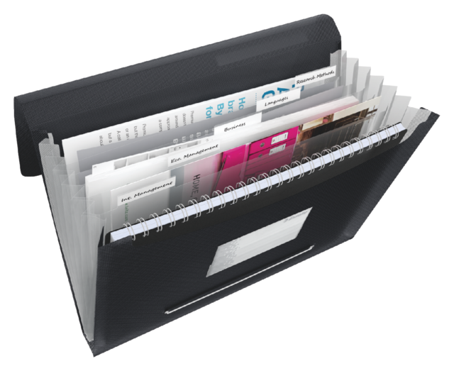 * Trieur PP au coloris gai et au ravissant design VIVIDA. 6 onglets extensibles avec index, matière PP translucide 0.67 mm.* Capacité élevée. * Pour l'organisation et le classement de documents. * Se combine parfaitement avec tous les autres produits VIVIDA. * Bande de fixation élastiquée élégante et ergonomique pour les déplacements. * Belle texture avec nouveaux motifs en reflief. * Organisation idéale des feuilles en papier grâce aux 6 onglets extensibles transparents et à l'index. * Pochette pour cartes de visite sur la couverture. * Capacité de 300 feuilles A4 (80g). * Etiquette dos au design VIVIDA.