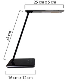 Detailled descriptionLampe pliable Interrupteur tactile sur le socle 4 niveaux d'intensité lumineuse 3 niveaux de température de couleur Port USB et chargeur QI Durée de vie: 50 000 heures Luminosité: 515 lumens Intensité lumineuse: 1500 lux 5 kWh/1000h (E)
