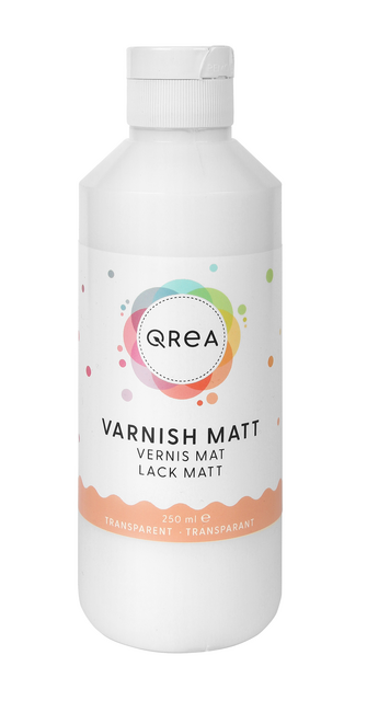 Vernis Qrea mat – 250mlLe vernis mat de Qrea est un vernis à base d'eau sûr et transparent, idéal pour protéger vos œuvres créatives contre les influences extérieures. Ce vernis forme une couche durable sur vos peintures ou objets et les protège contre l'humidité, les rayons UV, les moisissures, les chocs et les rayures. Une fois sec, le vernis reste transparent et offre une finition mate subtile sans brillance. En plus de protéger, il donne également un aspect supplémentaire et rend votre œuvre imperméable. Un choix fiable pour tout artiste ou amateur.* Caractéristiques : * Propriétés : sèche en devenant transparent, protège contre l'humidité, les UV, les moisissures, les chocs et les rayures.* Finition : mate.* Protection : rend l'œuvre résistante à l'eau.* Convient pour : les surfaces créatives et décoratives.* Origine : produit aux Pays-Bas.* Informations complémentaires sur les dangers : EUH208 : Contient du CIT/MIT (5-chloro-2-méthyl-2H-isothiazol-3-one et 2-méthyl-2H-isothiazol-3-one) (55965-84-9), du BIT (1,2-benzisothiazolin-3-one) (2634-33-5). Peut provoquer une réaction allergique. Contient du DMDMH. Peut provoquer une réaction allergique.