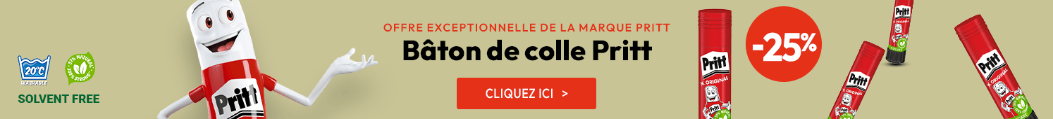 Pritt, Scotch, Bruneau… Retrouvez les plus grandes marques de bâtons de colle, adaptées à tous vos besoins du quotidien : colle permanente, économique ou naturelle. Que vous recherchiez une solution classique ou écologique, vous trouverez le produit qu’il vous faut parmi notre large sélection.