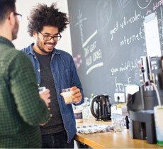 « tu as vu passer la dernière promo du CE ? », « tu as déjà rencontré ce client ? »... La salle de pause est aussi l'occasion de faire circuler les infos de la vie de l'entreprise.