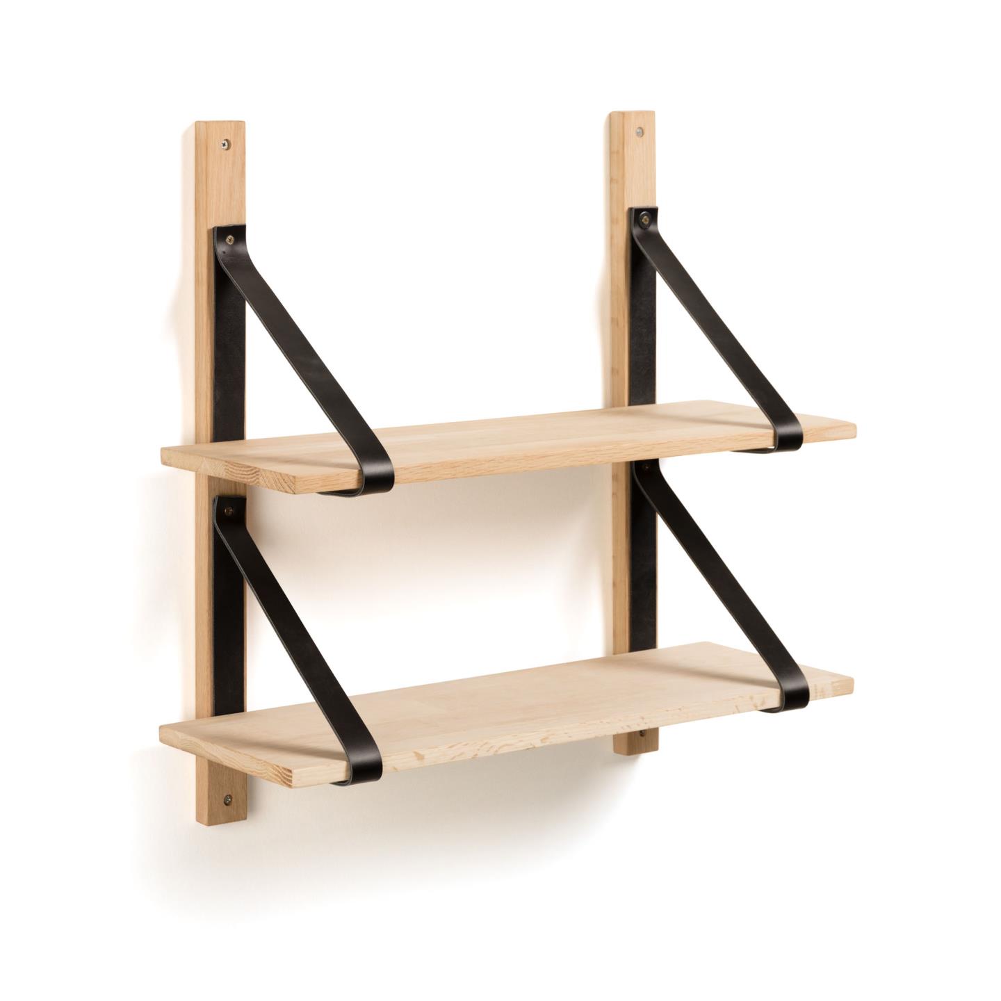 Étagère murale Nazeli en bois de bouleau massif et cuir noir 60 x 60 cm