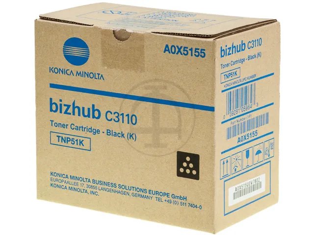 Autres cartouches avec les mêmes compatibilitésA0X5455 KONICA BIZHUB C3110 Toner Cyan 5000Pages TNP51Cà partir de55,50 € htA0X5155 KONICA BIZHUB C3110 Toner Noir 5000Pages TNP51Kà partir de24,50 € htToner remanufacturé OWA - standard - Noir - pour KONICA MINOLTA TNP-51 K, TNP-50 Kà partir de67,50 € htToner remanufacturé OWA - standard - Cyan - pour KONICA MINOLTA TNP-51 C, TNP-50 Cà partir de82,50 € htToner remanufacturé OWA - standard - Magenta - pour KONICA MINOLTA TNP-51 M, TNP-50 Cà partir de82,50 € htToner remanufacturé OWA - standard - Jaune - pour KONICA MINOLTA TNP-51 Y, TNP-50 Yà partir de82,50 € ht