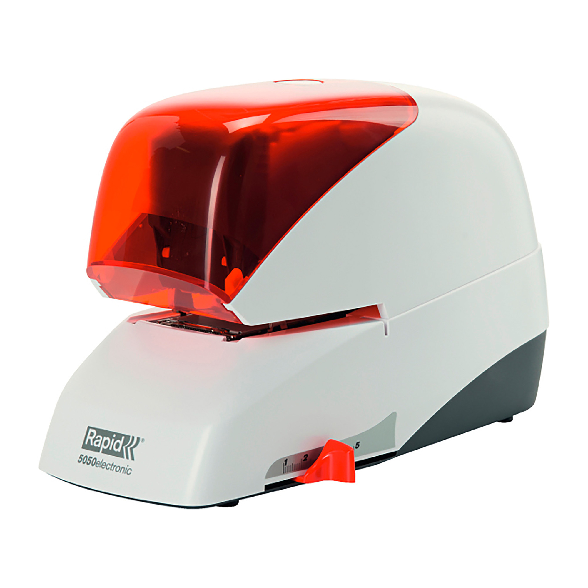 Cette agrafeuse électrique fonctionne sur secteur avec une tension de 220 V. Sa profondeur de gorge est réglable jusqu’à 5 cm selon vos besoins. Ce modèle est doté d'un capot de sécurité orange translucide.
