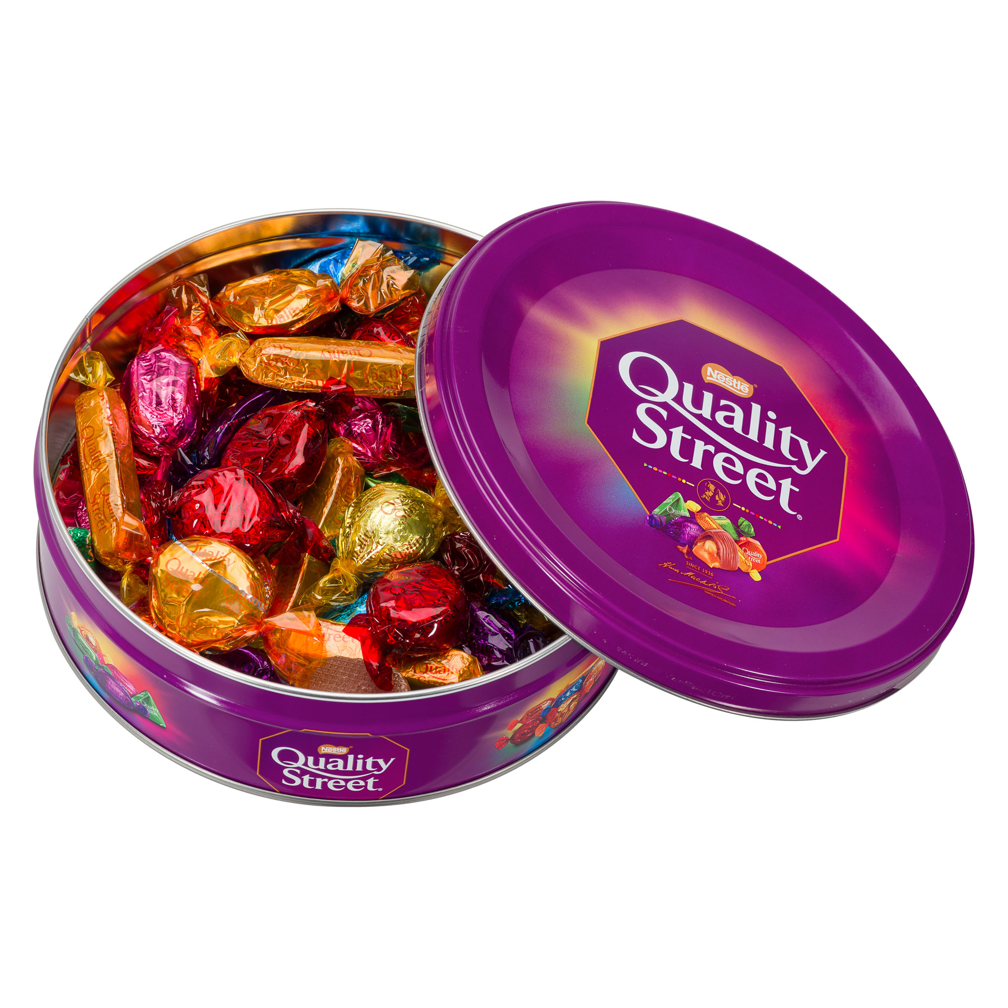Véritable classique britannique, Quality Street propose depuis 1936 de délicieux chocolats emballés dans des papiers de couleurs vives emblématiques.