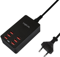 Description détailléeAvec fiche Euro, 6 ports USB pour la recharge de smartphonesentrée: 100-240 V, AC 50/60 Hz, sortie: 5 V, 2,4 A x 6(max. 6,4 A), supports OCP, OPV, protection de court-circuitdimensione: (L)107,4 (P)61,4 x (H)32 mm