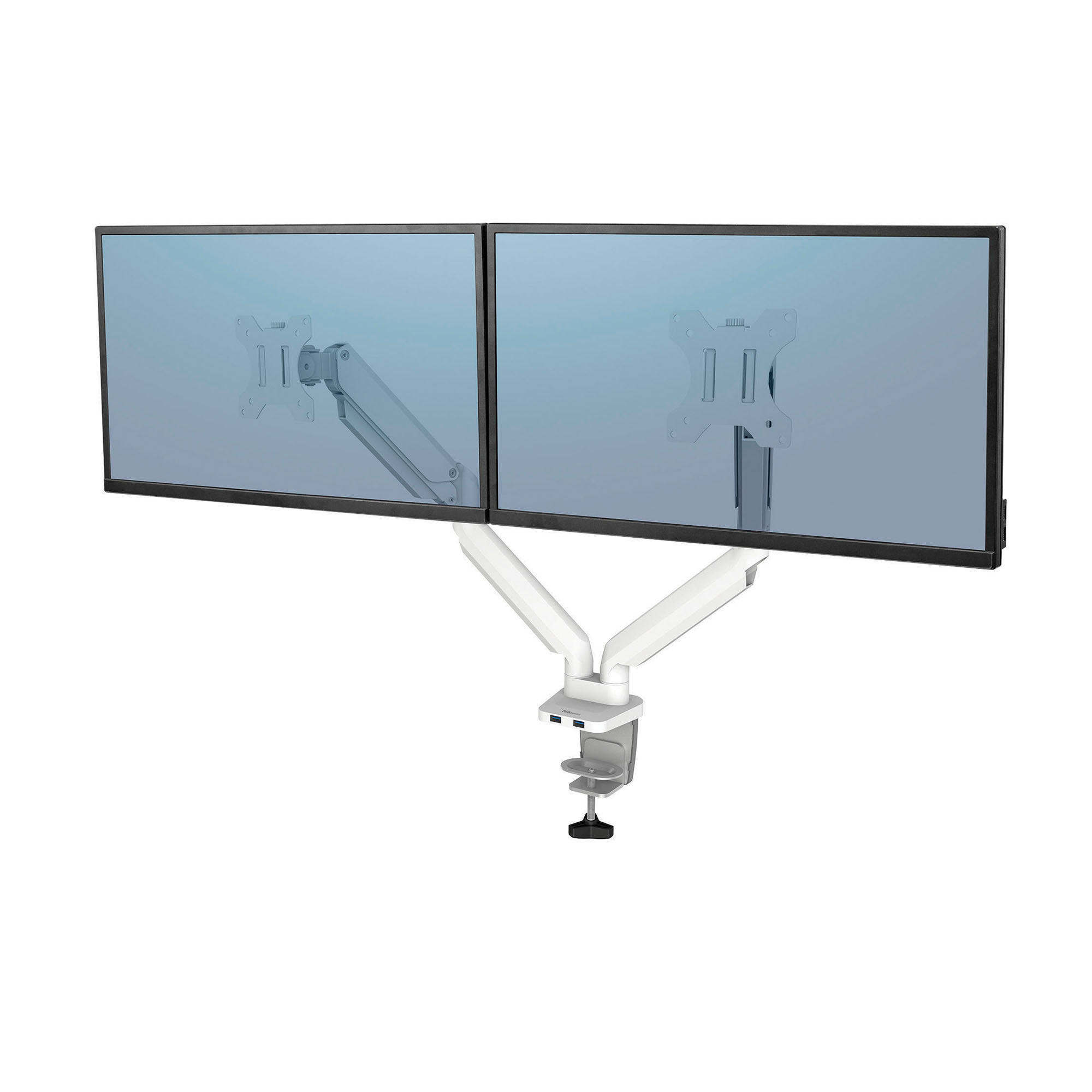 Supporte deux écrans pesant de 1,5 à 8 kg et jusqu'à 32" chacun.