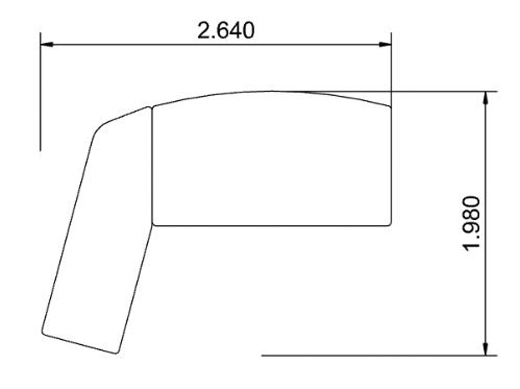 • Dimensions totales plateau+retour courbé: L 264 x P 198 cm