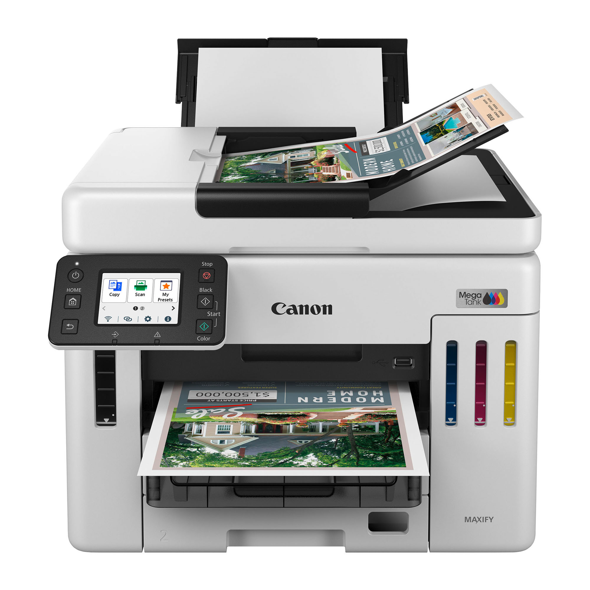 Améliorez la productivité de vos impressions professionnelles grâce à l'imprimante Canon Multifonction GX 7150 MegaTank et ses réservoirs d'encre rechargeables à haut rendement. Vous bénéficierez d'impressions de qualité professionnelle et d'un coût extrêmement faible.