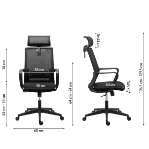 Chaise de bureau SPRITZ tissu et maille - avec accoudoirs et soutien lombaire - Appui-tête - Mécanisme Basculant centré - Pied noir