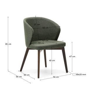 Chaise Darice en tissu chenille vert et bois de hêtre, finition noyer