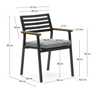 Chaise en aluminium avec accoudoirs en bois de teck massif.